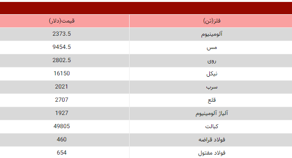 جدیدترین قیمت انواع فلزات اساسی در بازار بورس لندن به این شرح است.قیمت هایی که در این بازار کشف می شود مبنای قیمت در سایر بازارهای جهانی نیز است.